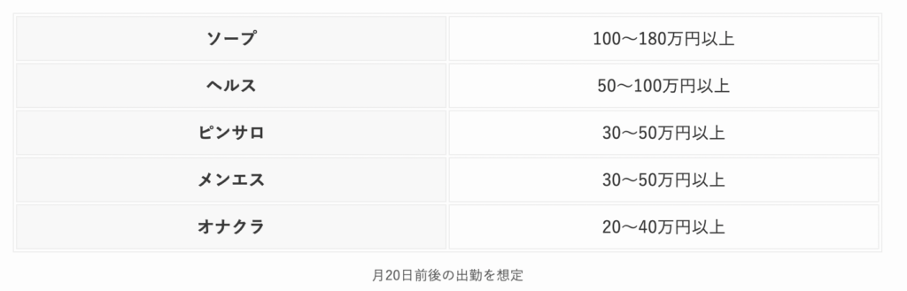 - 必要なだけ稼ぎたい→ヘルス・ピンサロ